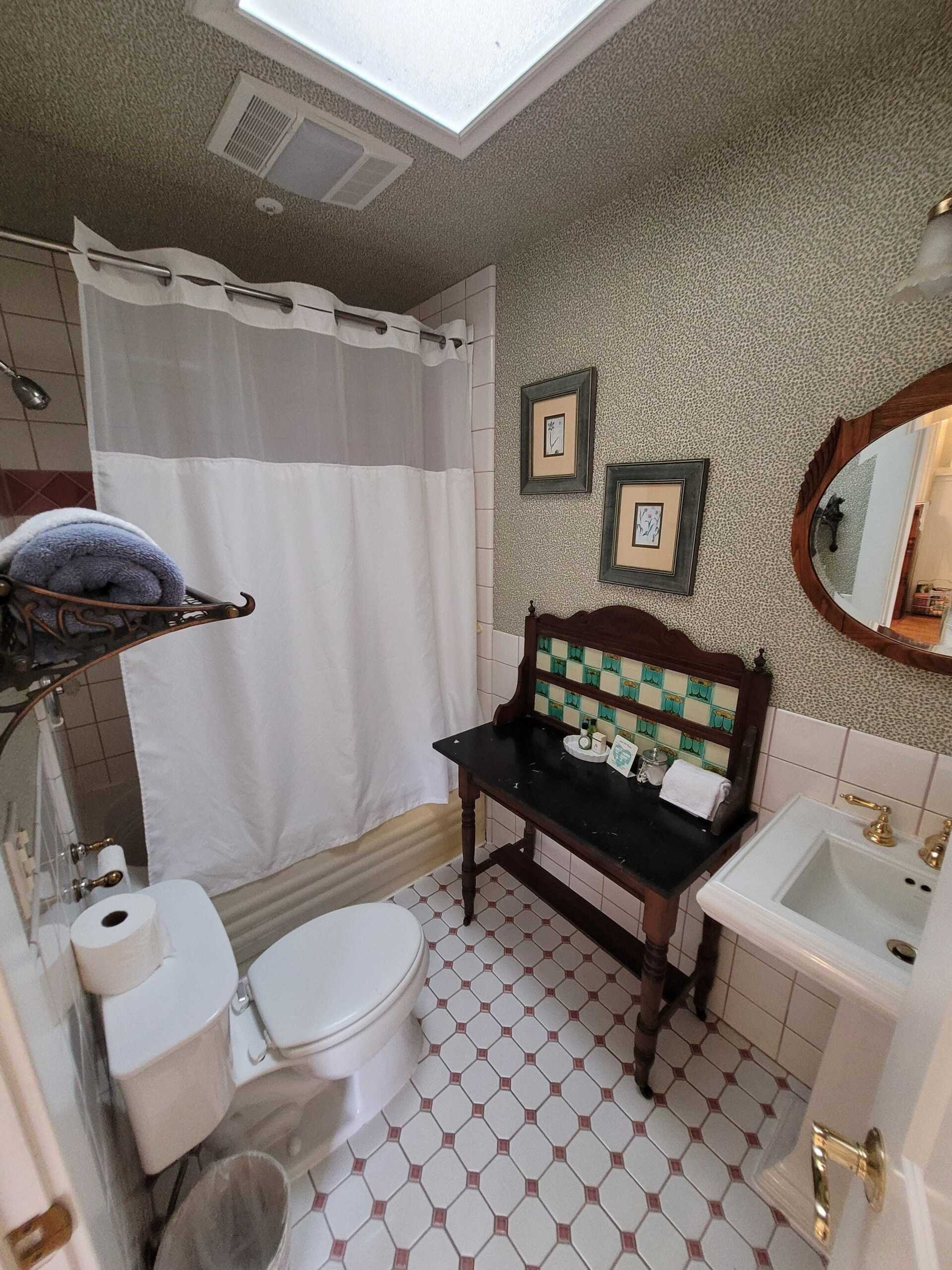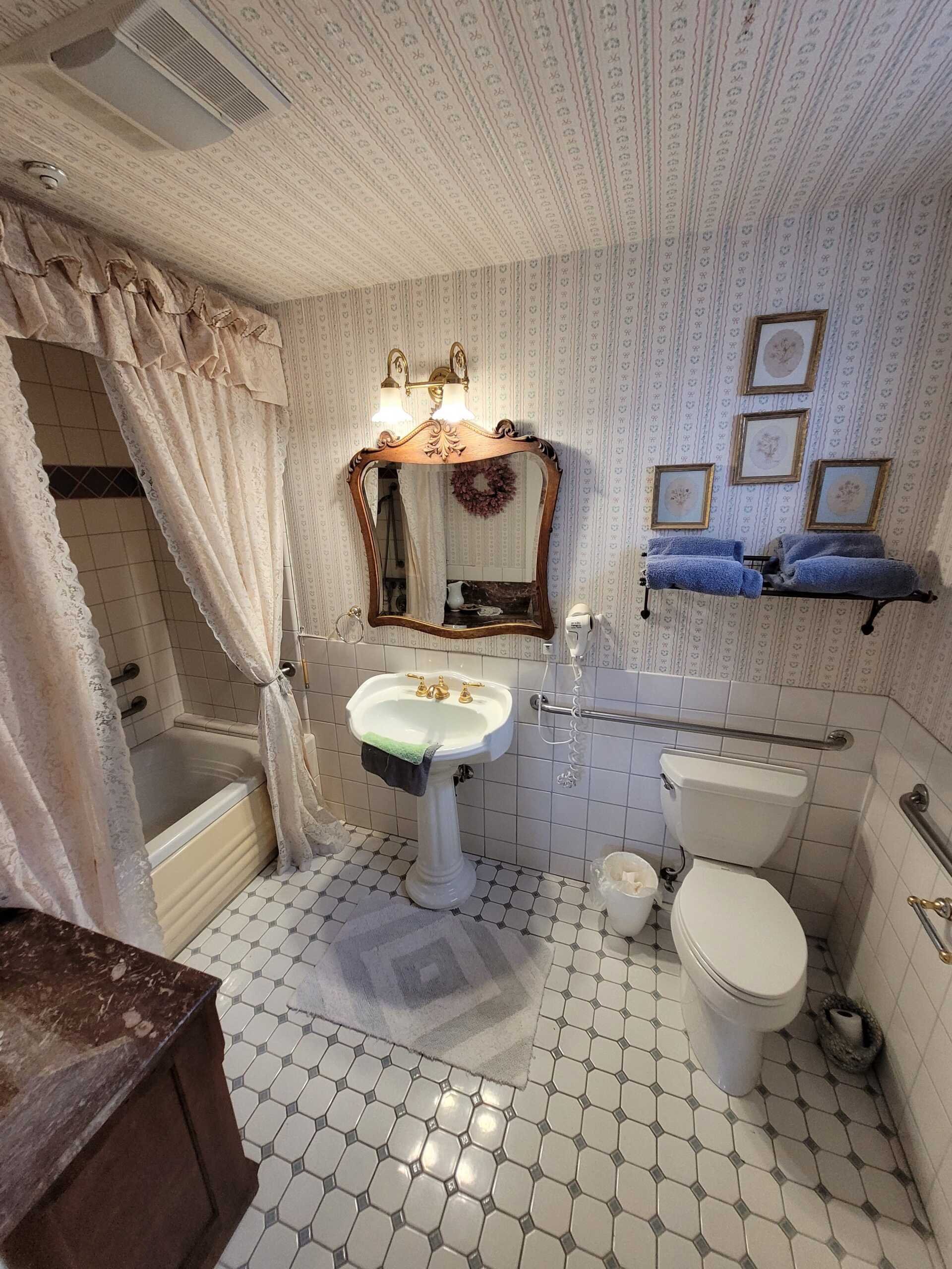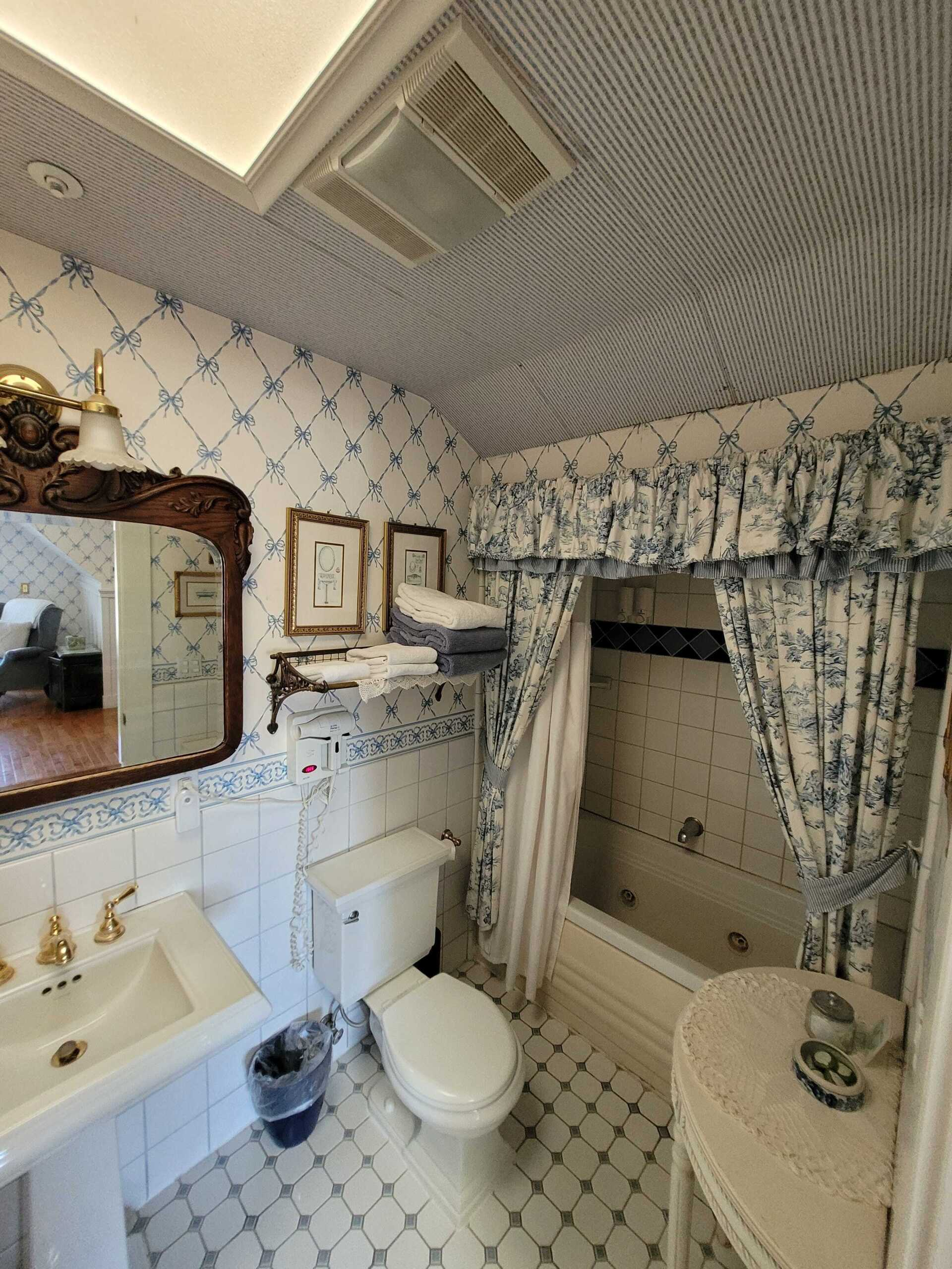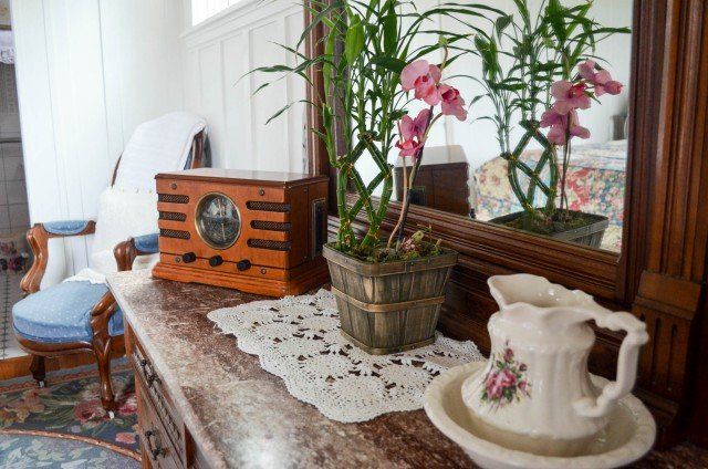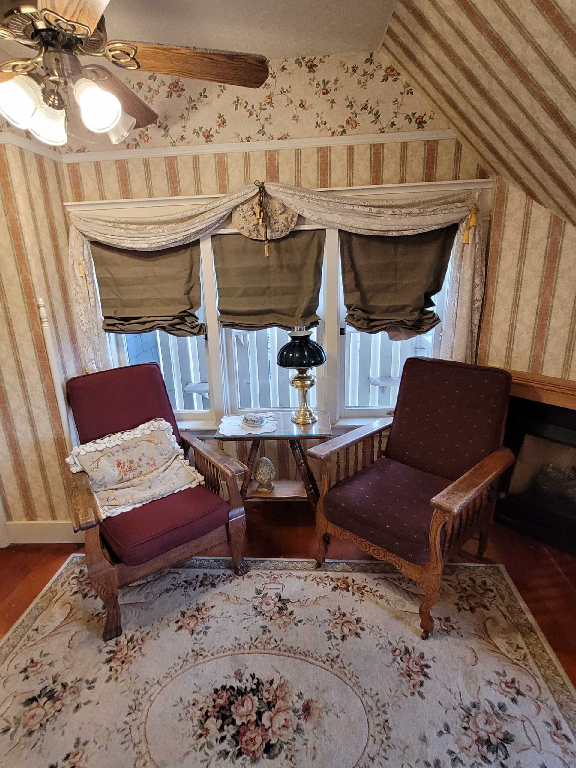 The romantic Victorian era is maintained in the Newport Room, decorated with Eastlake furnishings and red & florals. A garden view and sitting area add to the ambiance. Enjoy the tub with showerhead in this room's very own private bathroom.