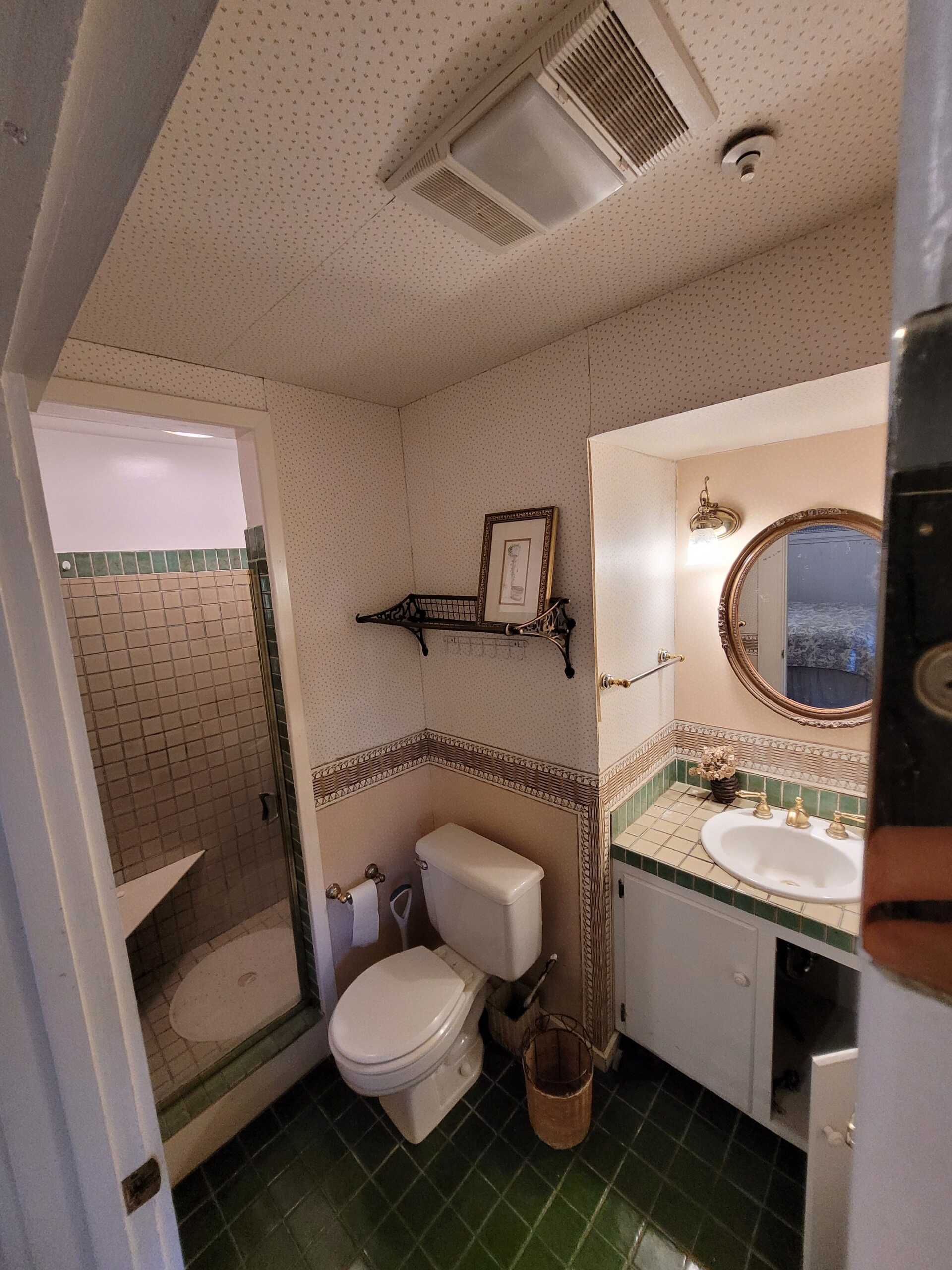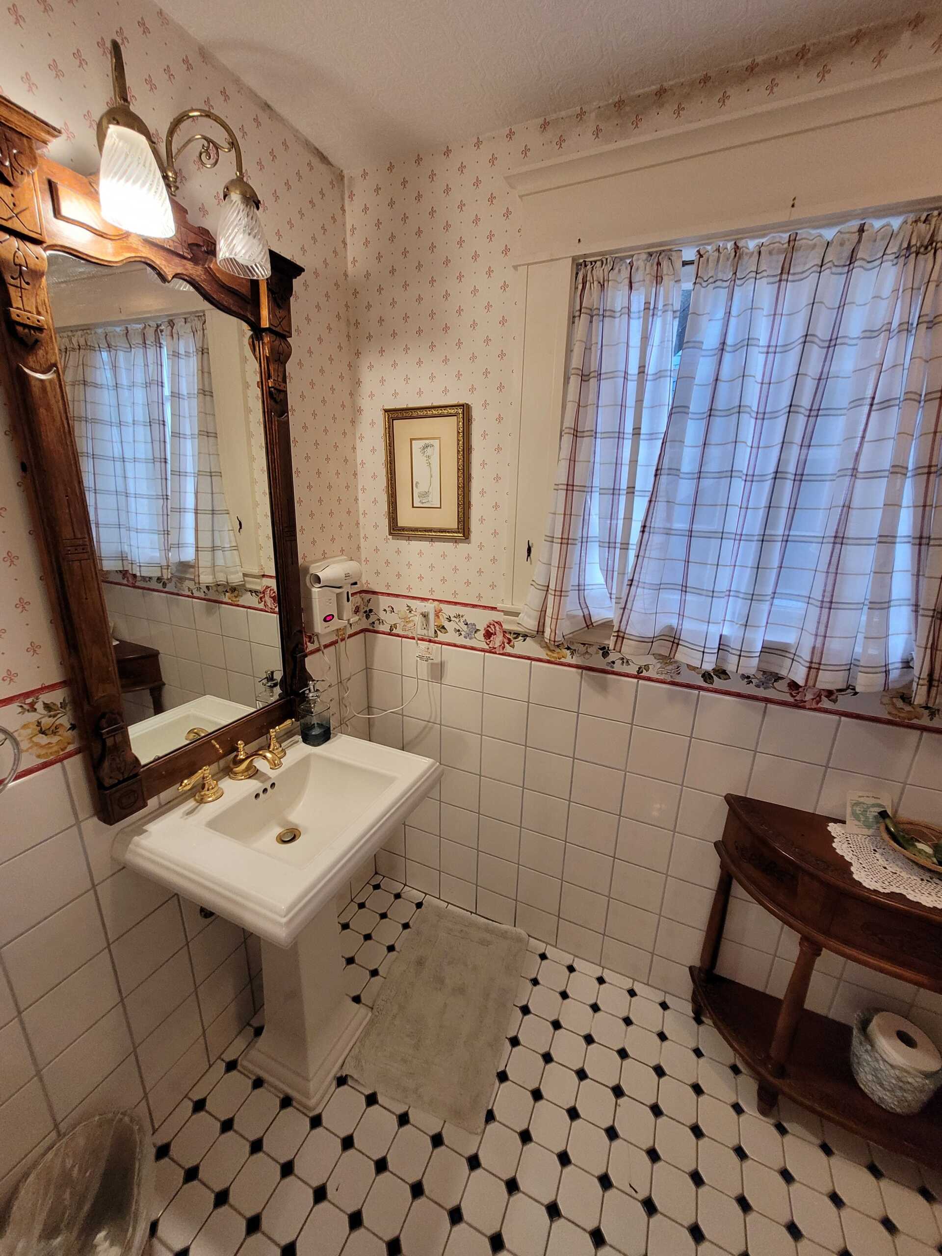 The Land's End Room is a a private room tucked away at the end of the garden. Old-fashioned floral wallpaper and Eastlake antiques create a feeling of quiet comfort in The Land's End. The accommodations provide a private bathroom with shower.